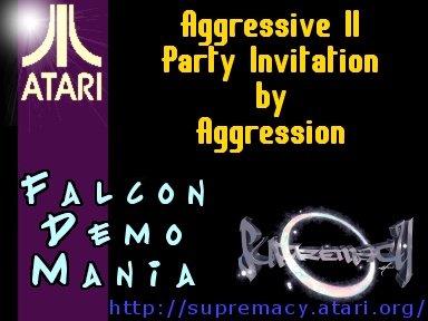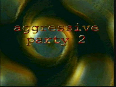 It features fast rotative motion blurr effects and an invitation text (in English) for Aggression's party.