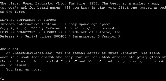 "Sorcerer", "Wishbringer" are also well made games, but less successful. A very weird story has "Leather Goddesses of Phobos", and later on Activision (which brought the company Infocom down) never re-issued a game collection with this very special text adventure.